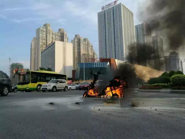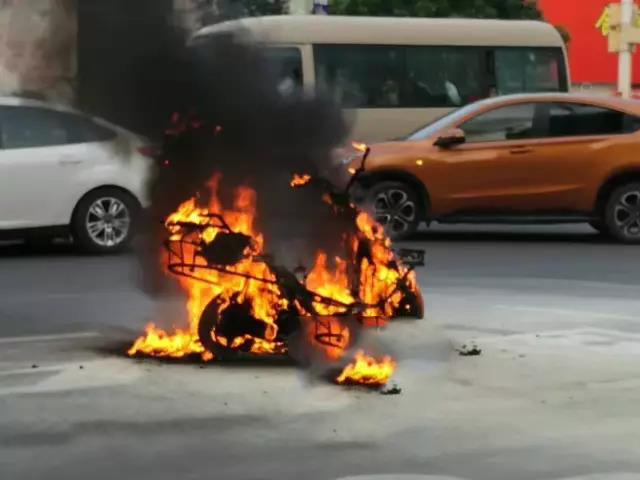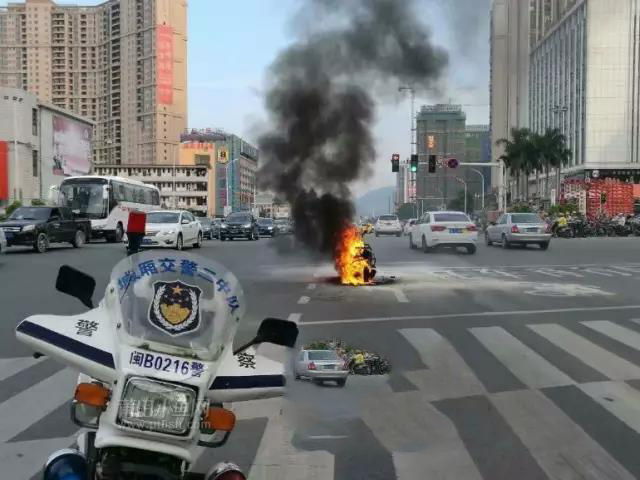 感謝網(wǎng)友“我不是貓”后臺爆料:今天17:15分左右,一輛女式摩托車在荔城路口附近斑馬線上自燃,視頻上可以看見自燃的摩托車還發(fā)出“砰”的爆炸聲。交警和消防及時趕到現(xiàn)場,處理了火勢,但是電動車已經(jīng)燒成了骨架?!?/span>