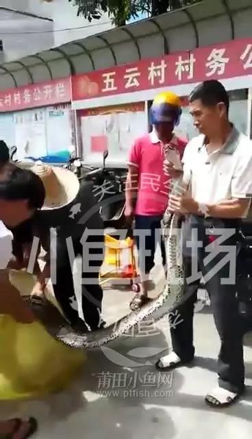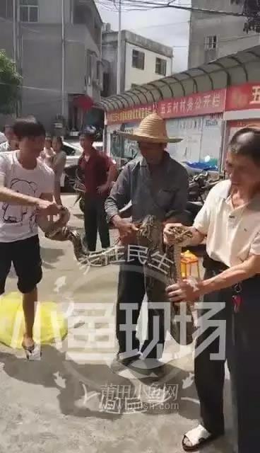 今天早上7點左右,莆田市城廂區(qū)華亭鎮(zhèn)五云村的一戶村民發(fā)現(xiàn)自己家的院子里的雞都莫名其妙死掉了,于是村民認(rèn)真查看后,發(fā)現(xiàn)原來是被一只大蟒蛇給咬死了,于是該戶村民聯(lián)合其他村民在石縫里,從蛇的尾部從石縫里拉出了大蟒蛇。