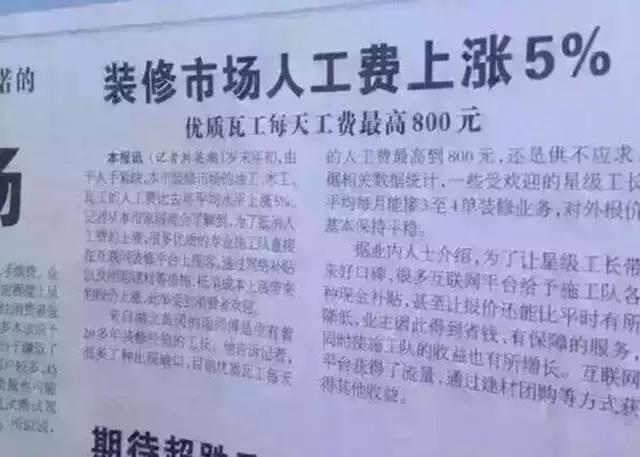 由于社會物價普漲,裝修工人實際生活成本增加,再加上裝修熟練工還比較緊缺,工資也跟著水漲船高,瓦工以前貼磚一般25-30元/平,現(xiàn)在瓦工貼磚能達到40-45元/平;油工、水電工、木工,平均日工資到250元至280元,此前為180元至200元;技術(shù)好的工人,還會在這個基礎(chǔ)上上浮15%甚至更多。