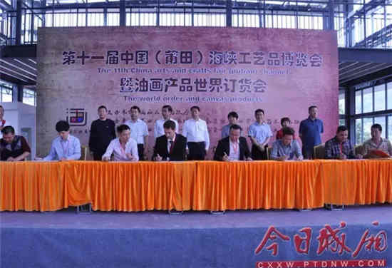 莆田建材網(wǎng)4月29日訊(今日城廂 報(bào)道)4月28日上午,第十一屆中國(guó)(莆田)海峽工藝品博覽會(huì)暨油畫(huà)產(chǎn)品世界訂貨會(huì)在莆田(國(guó)際)油畫(huà)城隆重開(kāi)幕,國(guó)內(nèi)外采購(gòu)商代表與油畫(huà)城企業(yè)代表上臺(tái)簽訂意向訂貨合同。莆田市副市長(zhǎng)李伙金,城廂區(qū)委書(shū)記林樺,區(qū)長(zhǎng)許建平,區(qū)人大常委會(huì)副主任王烏妹,副區(qū)長(zhǎng)黃美光、于曉棟等出席開(kāi)幕式。