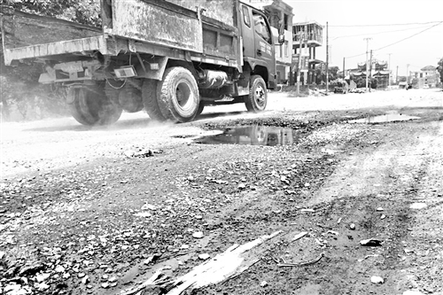 不時(shí)有工程車輛駛過(guò),整條路路面坑坑洼洼,十分不平整