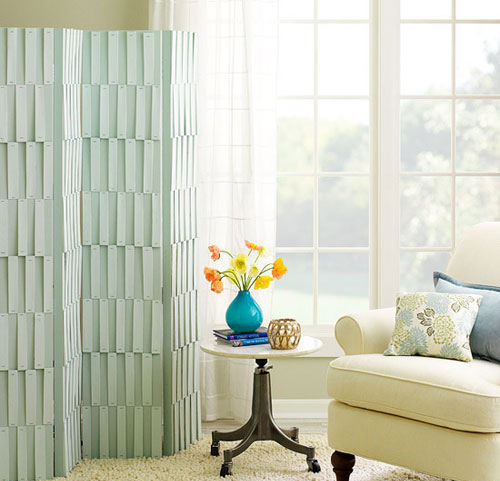 可以利用家中屏風(fēng),讓它具有獨(dú)特的變化感,通過(guò)墊片將整個(gè)屏風(fēng)都變得具有層次感。淡雅的色調(diào)和整個(gè)空間的格調(diào)都搭配得十分協(xié)調(diào)。