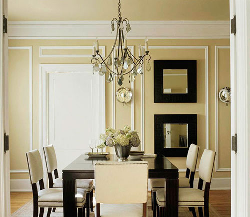 在餐廳一旁的墻面,通過(guò)將鏡子和邊框線的有效結(jié)合,呈現(xiàn)出獨(dú)特的變化感,通過(guò)狹長(zhǎng)型的邊框處理,具有拉升墻面的的視覺(jué)效果。