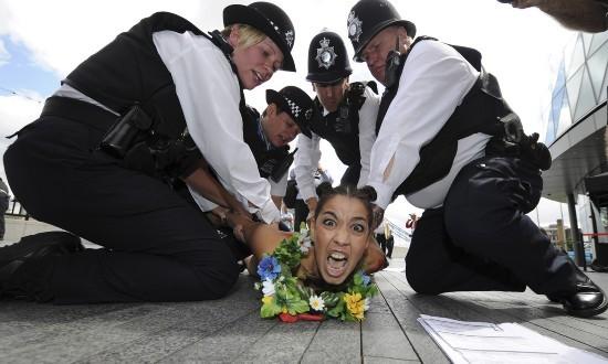 由于在公共場所裸露是烏克蘭法律所禁止的行為,對費曼成員來說短暫被拘和罰款一點都不稀奇。她們和警察之間的追逃游戲,以及警察強行遮住她們的胸部的畫面,都是歐洲各國攝影記者渴求的“好題材”。