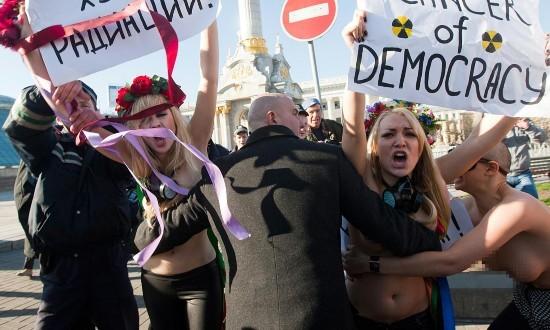 有烏克蘭記者分析費曼組織的“斗爭策略”時調(diào)侃,“裸抗”有兩個“好處”:一是吸引眼球;二是節(jié)約成本,不至于給這個缺乏資金來源的組織造成財政負擔(dān)。費曼的“裸抗”確實一直在控制成本,她們抗議時上身一般赤裸,惟一要花錢的就是涂在身上的各色油彩。
