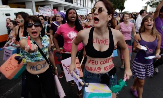 一場反對針對婦女暴力的抗議游行活動——“蕩婦游行”于普世青年節(jié)期間在里約熱內(nèi)盧的街道上舉行。巴西蕩婦游行超6000人參加,除了抗議針對婦女暴力,今年游行還提出了“國家政教分離”、“墮胎合法化”、“規(guī)范賣淫行為”、“反對胎兒規(guī)約”等主題。