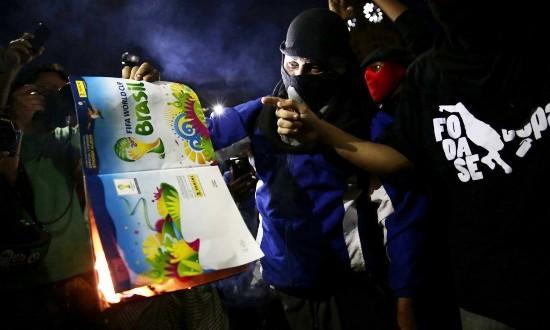 大學(xué)生多斯桑托斯說:“我們反對把過多的錢花在世界杯上,這些錢應(yīng)該被投到醫(yī)療、教育以及交通和住房中?!碑?dāng)抗議人群靠近市中心時,隊伍中一些無政府主義者攻擊了一輛空警車,其他人還點燃了一輛小車,并打碎一家銀行的窗戶。為控制局面,警察使用了催淚瓦斯和橡皮子彈,100多名抗議者被拘留。